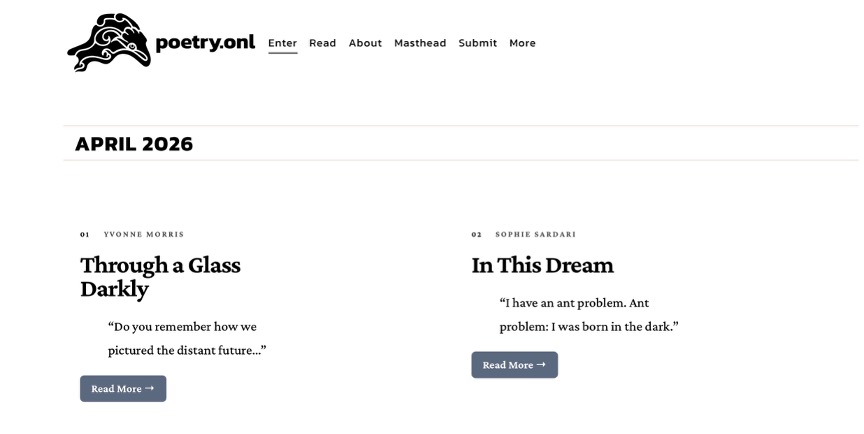 Poetry Online, also known as poetry.onl, is a nonprofit organization dedicated to publishing poetry in accessible formats. Through our web journal and chapbooks, we feature poetry in written, visual, and time-based forms, with audio, plain text, and captioning whenever possible. Our mission is to expand the poetry space to better serve disabled poets, readers, and viewers.