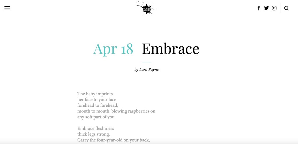 That’s right. Every. Single. Day. Two super human editors – Jen Karetnick & Catherine Esposito Prescott – put out for all the world to see, one gorgeous poem. You can subscribe and have one poem delivered to your inbox every day and become an Instagram follower to find one fine poem in your feed every day.